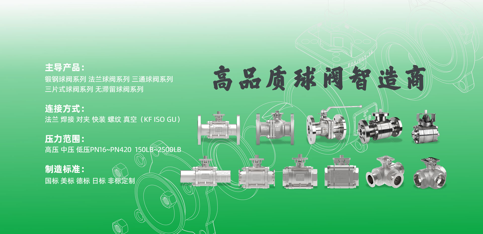 锻钢球阀系列、法兰球阀系列、三通球阀系列、三片式球阀系列、无滞留球阀系列 国标 / 美标 / 德标 / 日标 / 非标定制